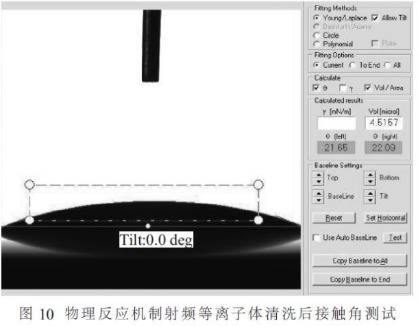 對LED封裝工藝前添加射頻等離子清洗,測量鍵合引線的拉力強度,與未進行射頻等離子清洗相比,鍵合引線拉力強度有明顯增加,反映基板及芯片進行射頻等離子清洗后是否有清洗效果的另一個檢測指標為其表面的浸潤特性,浸潤特性的提高表明在封裝工藝前進行射頻等離子清洗是十分有益的。