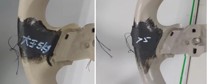 金徠等離子處理設備對方向盤進行處理后的粘接拉力測試結果:
